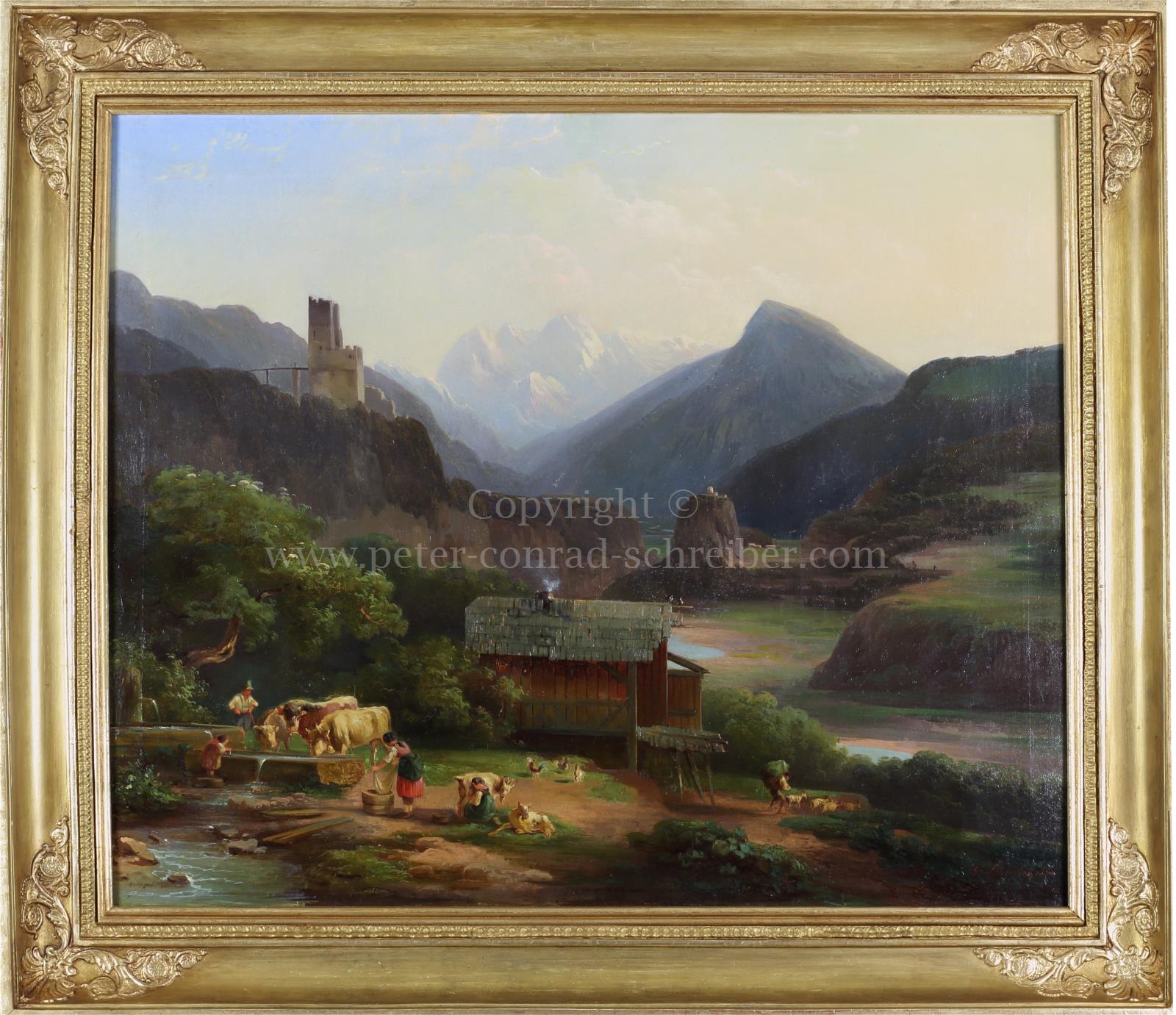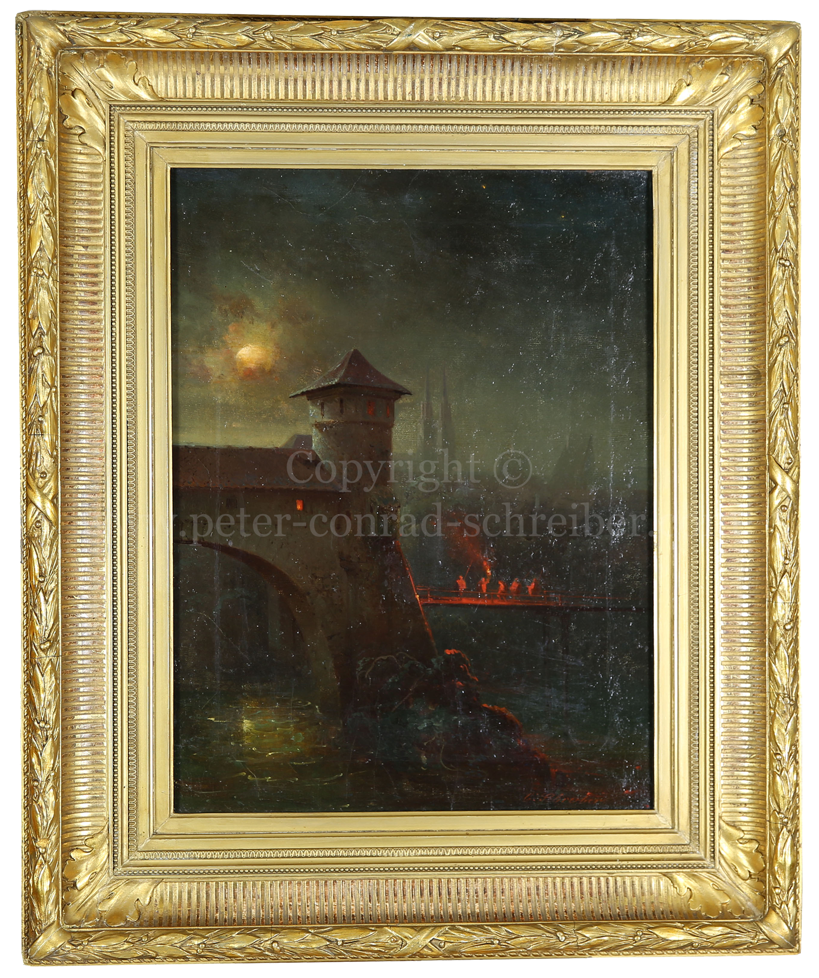 Gouache auf Papier, original blattvergoldeter Rahmen aus der Zeit